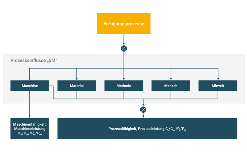 Der Output eines Prozesses bestimmt, ob es sich um einen Mess- und Prüfprozess oder um einen Fertigungsprozess handelt. Ist der Output datenbasiert, wie z.B. Messwerte oder attributive Bewertungen, so liegen Mess- und Prüfprozesse vor. Ist der Output ein Teil (Werkstück, Produkt oder Bauteil) so ist von Fertigungsprozessen zu sprechen. Abhängig ob es sich um einen Mess- und Prüfprozess oder um einen Fertigungsprozess handelt, werden unterschiedliche qualitätssichernde Methoden herangezogen.